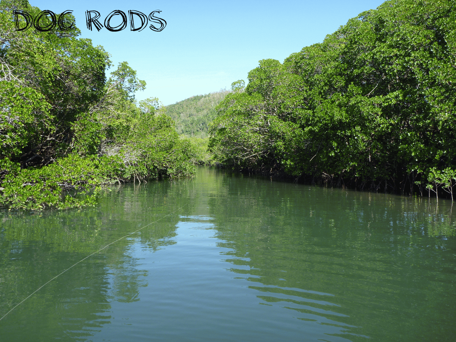 Und so begrüßte uns Guide Ken am nächsten Morgen beim Slippen des mehr als geeigneten Angelboots. Kurz erklärte er uns, was er vor hatte. Keine Ahnung, was er gesagt hat. Hab nicht zuhören können. Ich dachte nur an eine kreischende Bremse und dicke Travellys. Endlich ging es los und Ken steuerte das Boot nach einer kurzen Fahrt in eine wunderschöne Mangrovenbucht.
