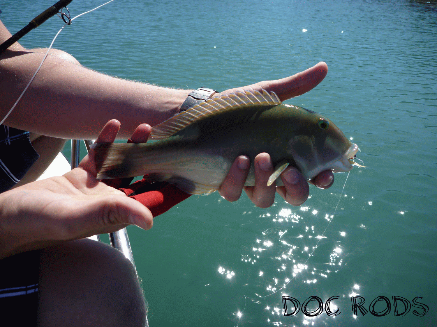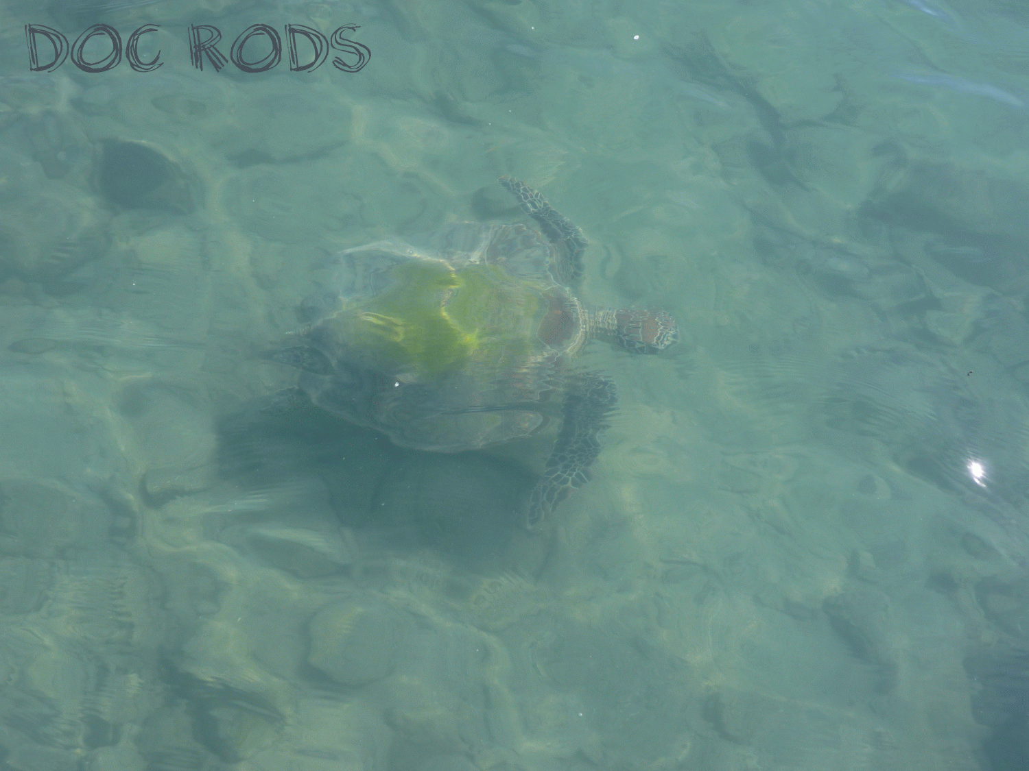 Wir entschieden uns für eine kleine Auswahl an Poppern, Clouser Minnows, Surf Candys und Crazy Charlies. Die erste halbe Stunde hatte ich 2-3 vorsichtige Anfasser , sonst nichts. Wir trieben mit dem Boot weiter in die Bucht. Das Wasser war flach und glasklar. Der Boden schlammig. Ab und zu konnte man Port Jackson Sharks, die vom Boot aufgescheucht wurden verschwinden sehen. Dann den ein oder anderen Rochen. Meist waren es Honeycomb und Blue Spottet Stingrays. Das war schon ergreifend. Natürlich gab’s auch hier in Flussmündungen Krokodile, war ja klar. Aber Ken erklärte uns, dass es eine ganz einfache Lösung gibt. Wir gehen nicht zu denen ins Wasser und die kommen nicht zu uns ins Boot. Beruhigend!!! Plötzlich sah ich unmittelbar vor dem Boot 2 riesige Carrettschildkröten verschwinden. Wow!!! Schnell die Kamera raus, doch es war zu spät! Meine Frau war natürlich frustriert. Schließlich sind die Schildkröten deutlich faszinierender, als das stupide werfen auf imaginäre Fische. Sie entwickelte aber Ehrgeiz und einen sagenhaften Wurfstil, da sie mit Ihrer Spinrute den Popper nach einiger Zeit direkt an den Mangrovenwurzeln präsentierte.