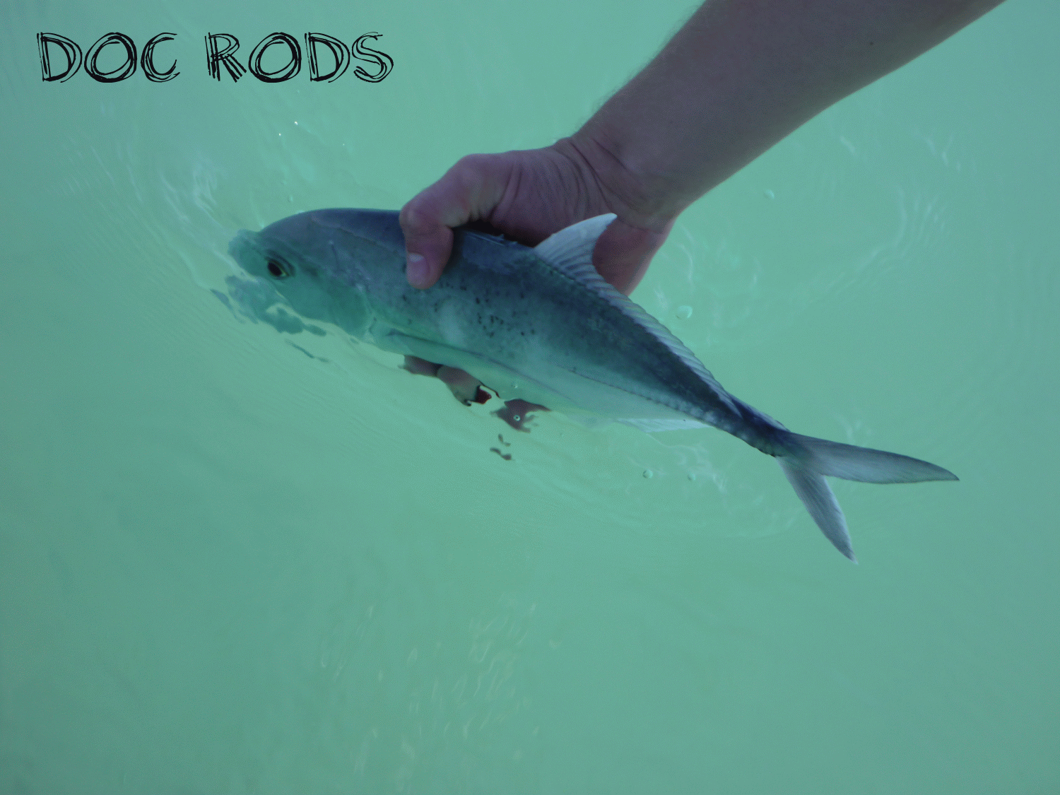 Leider hatte seine Statur nichts mit seinem Namen zu tun, da das kleine Kerlchen nur ca. 35-40cm lang war. Ok, was das Drillverhalten angeht schon eher, da der kleine mächtig Rabbatz gemacht hat. In dieser Bucht war nichts mehr los, obwohl wir auflaufendes Wasser hatten und jede Menge Baitfish unterwegs war, ließen die großen Räuber auf sich warten. Also ging es zum nächsten Spot. An dieser Stelle sollte es sowohl Mangrovenspezies, als auch Riffspezies geben. Neben den verschiedenen Stachelmakrelenarten, gab es also auch Möglichkeiten Barramundis, Snapper, Grouper und Coral Seetrouts zu fangen. Ich stellte etwas um und fischte eine Crazy Charlie. Nun lief es deutlich besser.