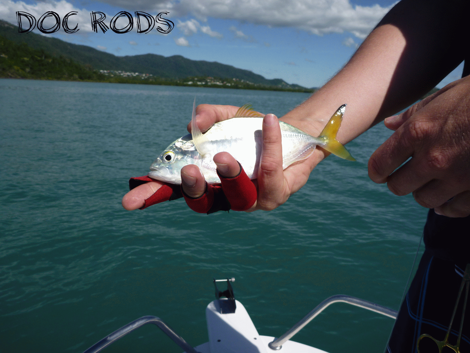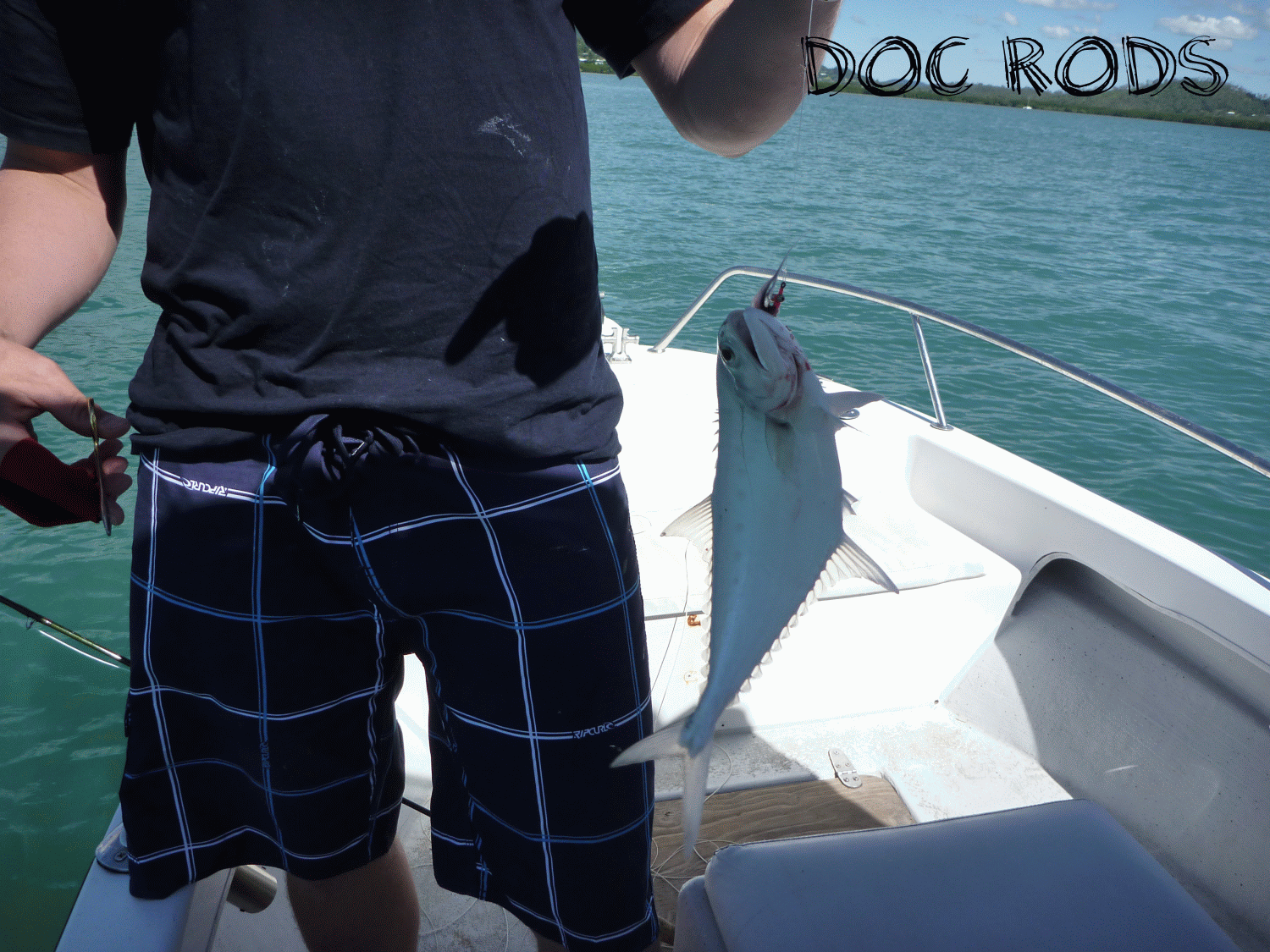 Nur die Größe der Fische lies etwas zu wünschen übrig. Ich fing einige Parrotfish, einen kleinen Grouper und konnte einige Garfish haken. Eine tolle Fischerei!!! An einem kleinen Unterwasserberg konnte ich dann einen besseren GT haken. Der war zwar nur unwesentlich größer, ging aber ins Backing und war wunderschön gezeichnet. Dann lief nicht mehr viel und wir versuchten es an einer Landspitze zum offenen Pazifik hin. Hier sollte es endlich die dicken Brummer geben. Allerdings leider nicht für mich. Da lief rein gar nichts. Auf einigen anderen Angelbooten, die mit uns die Stelle befischten, konnte auch niemand einen Fisch landen. Die Zeit ging langsam dem Ende entgegen, auch wenn ich es nicht wahr haben wollte. Auch wenn die Fischerei an diesem Tag nicht so erfolgversprechend war, so war sie für mich dennoch unvergesslich. Auf dem Weg zurück nach Airlie Beach befischte ich noch einen Unterwasserberg und fing noch einige Yellowtail, sowie einen schönen Queenfish von ca. 40cm.