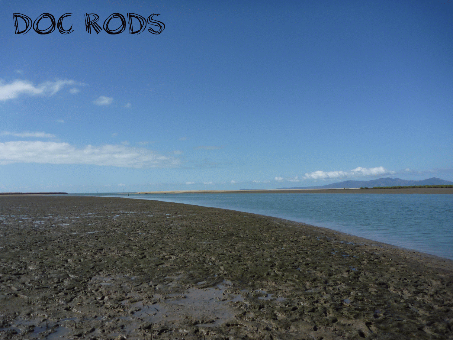 Doch zurück zum Fliegenfischen… Schließlich wollte ich noch erzählen, wie es mit der Fliegengerte im Gepäck weiter ging. Die nächste Gelegenheit zu Fischen hatte ich in Townsville. Hier ging es erstmal in den Tackle Shop, Eigentlich wollte ich nach einem Guiding fragen, doch der Besitzer des Shops meinte nur, dass ich mich bei auflaufendem Wasser im Mündungsbereich des in Townsville mündenden Ross River ans Ufer stellen sollte. Da würde alles gehen. Travellys, Queenies, Barramundi u.v.m. Natürlich fragte ich nach den örtlichen Krokodilpopulationen, aber der Aussie lachte nur und meinte hier in der Stadt wär es sicher. Er beschrieb mir den Weg und am nächsten Mittag stand ich am Wasser. Leider war ich etwas zu früh dran, da es erst gegen Abend auslaufendes Wasser geben würde. Gegen Abend wollten wir aber schon im ca. 200km entfernten Airlie Beach sein. Also blieben nur Stunden zum Fischen gegen Mittag. Obwohl ich in der Nähe des Hafens fischte war die Stelle sehr schön. Einige Mangrovenecken, schlammig, sandiger Grund und glasklares, türkisbaues Wasser. Ich suchte mir eine Steinschüttung aus begann zu fischen. Nach einiger Zeit konnte ich einen australischen Tarpon (ca. 50-70cm groß) beobachten, wie er mehrfach meinen Surfcandy attackierte. Wahnsinn!!! Da, eine erneute Attacke, Anhieb und… Daneben!!! Das war zu früh!!! Mist!!! Vorerst tat sich nichts mehr. Ich begann eine weitere Stelle ein wenig weiter Richtung Hafen anzuwerfen. Leider verfing sich die Schnur ständig in den mit Seepocken bewachsenen Steinen. Ich musste die Schnur erst enttüddeln. Ich hob die Rute an und dachte zuerst an einen Hänger, doch der Hänger setzte sich plötzlich in Bewegung. Die Rute war komplett krumm und der Fisch ging sofort ins Backing. Was für ein Fisch!!! Ich hatte dieser Power nichts, aber auch gar nichts entgegen zu setzen. Nach kurzer Zeit, ohne das ich überhaupt wusste, mit wem ich es zu tun hatte, schwamm der Fisch auf mich zu. Ich bekam, wie es dann halt so ist, die Schnur in diesem Tempo nicht unter Kontrolle und der Druck ließ nach. Nachdem ich wieder Druck aufbauen konnte, drehte er wieder um, die Fliege schlitzte aus, und der Fisch meines Lebens verschwand im Ross River… Ich konnte nichts sagen und saß nur da…