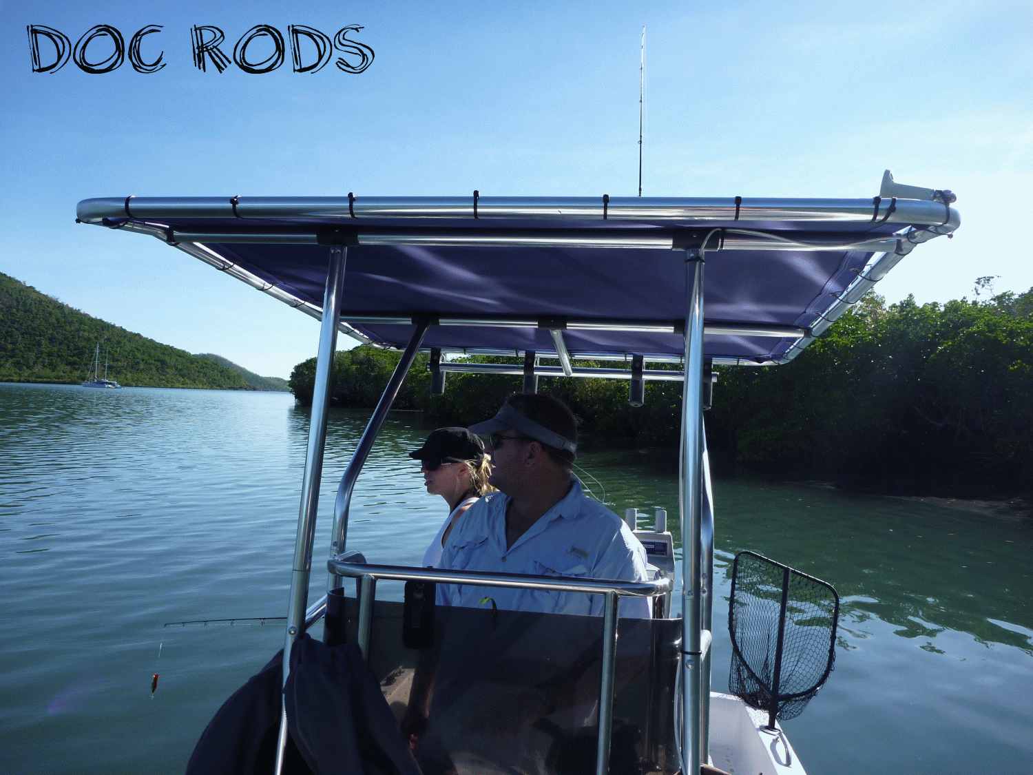 Ach ja, bei all der Schwärmerei muss ich noch kurz etwas zum „angelrischen Abschluss“ schreiben. Da ich meine Angeltour vor Cairns und am Daintree aus verschiedensten Dingen leider nicht antreten konnte, juckte es mich natürlich in den Fingern, es vor den Whitsundays doch mal zu versuchen. Und tatsächlich viel der Flyer eines Guides in die Hände. Das Boot sagte mir zu und er bot Touren zum Inshorefishing an. Also kurzer Hand mal angerufen und einen Termin ausgemacht. Leider geht Fliegenfischen nur in Verbindung mit einer Vollcharter, was sicherlich platzmäßig ein Vorteil, als finanziell gesehen für einen allein natürlich nicht so ganz ohne ist. Für eine Halbtagestour liegt man so bei ca. 400€. Was soll’s!!! Man kommt nicht alle Tage nach Queensland. Ich konnte sogar meine Frau überreden mitzukommen. Nachdem ich mich mit dem Preis arrangiert hatte, was zugegebenermaßen ziemlich lang dauerte, konnte ich es kaum erwarten. Wie ein kleines Kind auf die Bescherung fieberte ich der Angeltour entgegen. Die Erwartungen waren hoch…